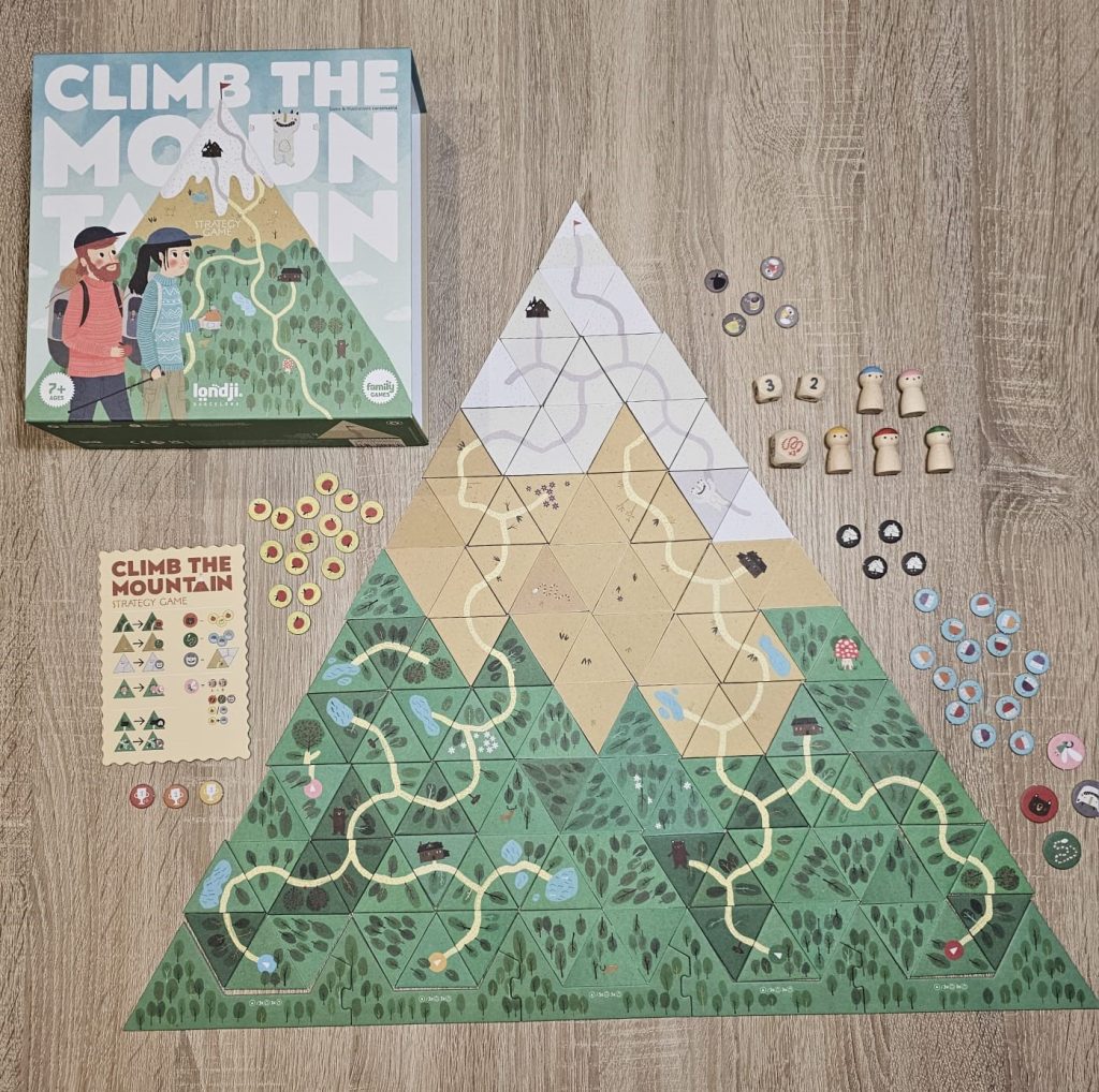 - Descripció: Climb the Mountain és un joc cooperatiu d’aventura i estratègia en què els jugadors han de treballar junts per arribar al cim de la muntanya abans que s’acabi el temps. A través del llançament de daus i la presa de decisions compartida, els participants hauran de superar obstacles, gestionar el seu equipament i planificar el millor camí cap al cim. Com és habitual en els jocs de Londji, destaca per les seves il·lustracions delicades i els materials sostenibles, que fan que cada partida sigui una experiència visual i emocional molt agradable.